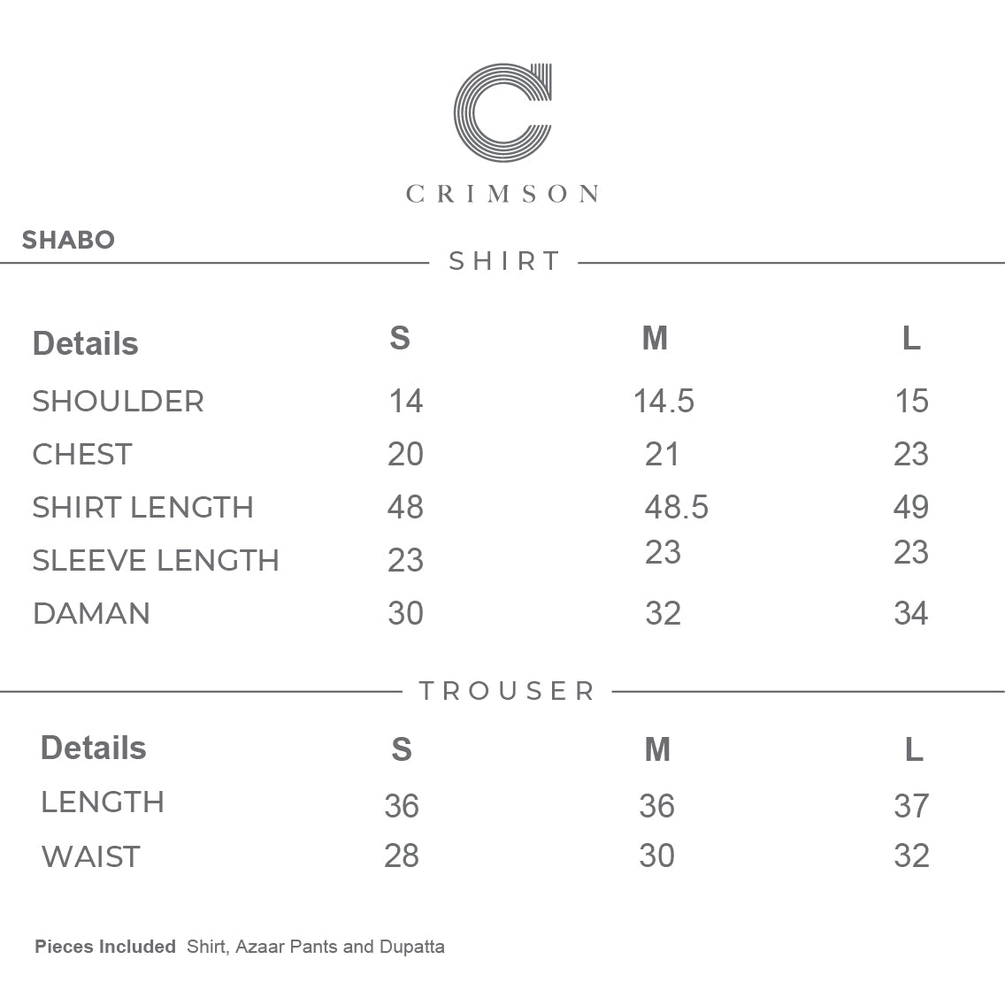 Price Includes: Shirt, Azaar Pants and Dupatta