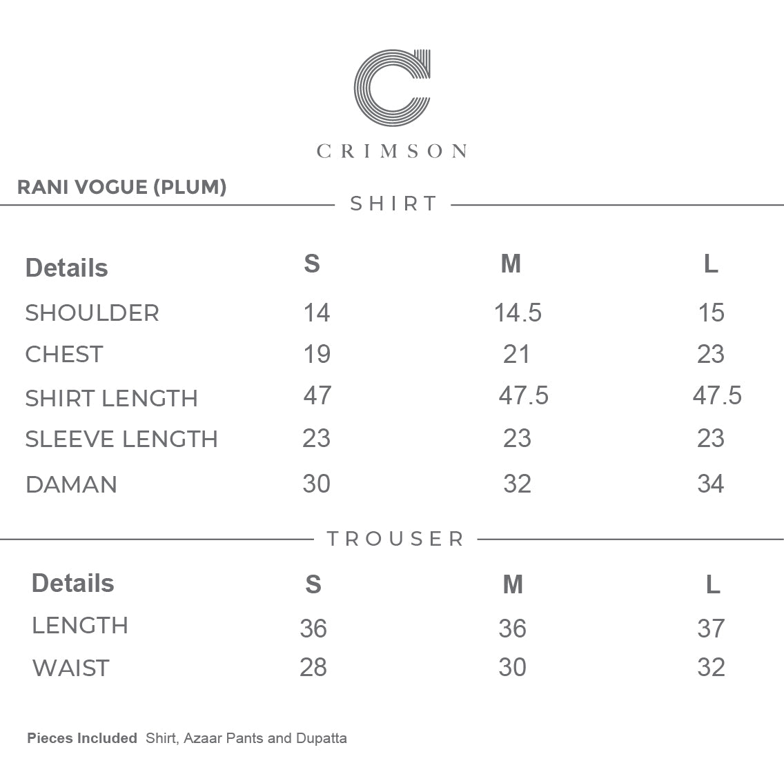Price Includes: Shirt, Azaar Pants and Dupatta